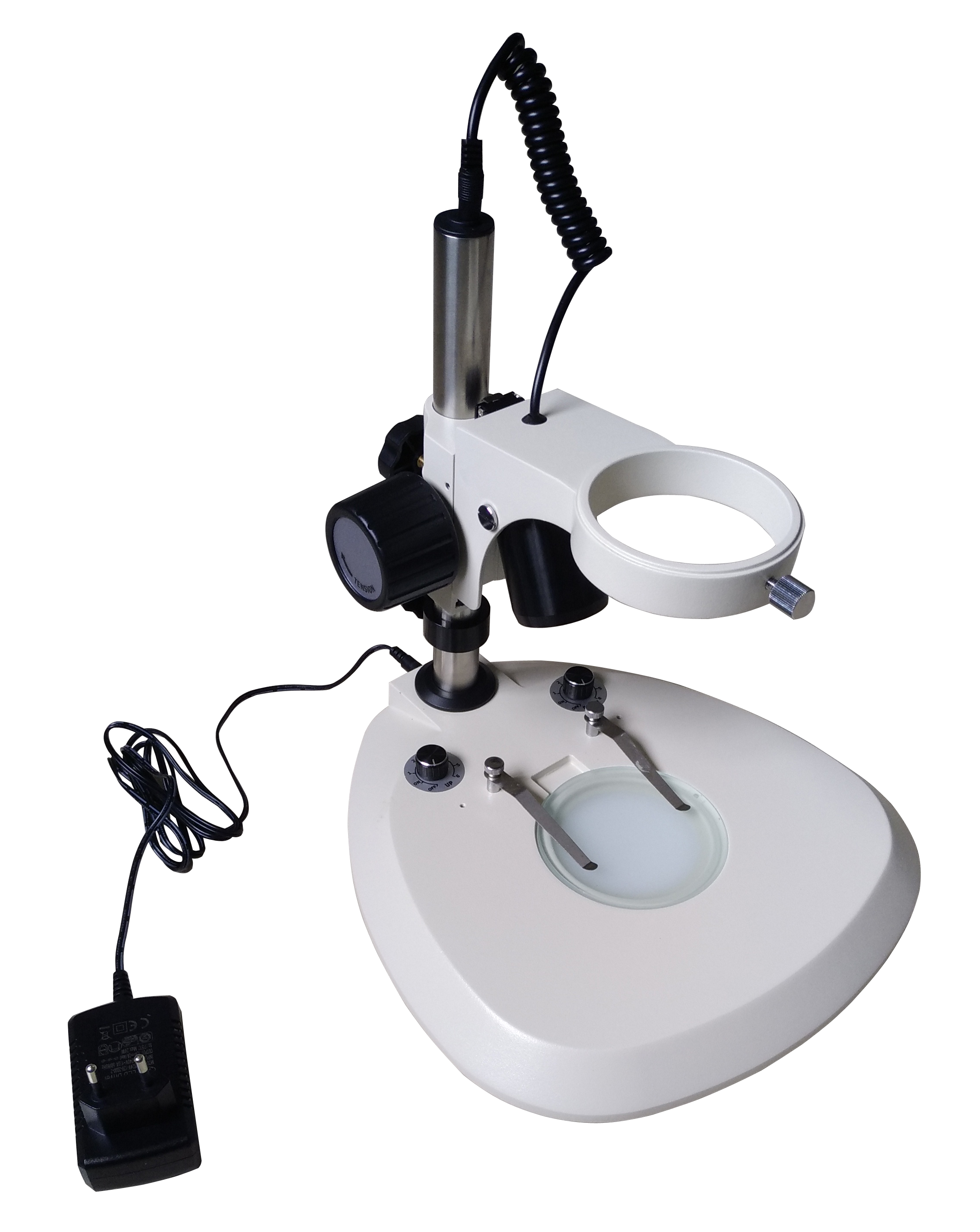 SD17/DC底座組上光源為可調(diào)角度、可調(diào)亮度白光3W LED上光入射照明光源,下光源為內(nèi)置白光LED下光透射照明,已通過CE認(rèn)證。