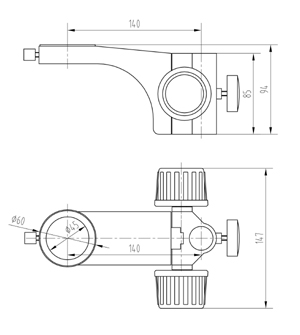 型號名稱: SF11升降組 說 明: ● 調焦手輪松緊可調整,確保長期使用可靠 ● 立柱安裝孔直徑Φ25mm,鏡體安裝孔直徑Φ45mm, 兩孔中心距140mm